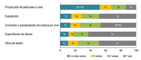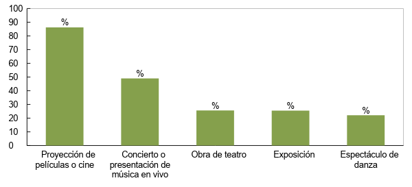 - Proyecciones de películas, los eventos más frecuentados, mientras que los espectáculos de danza se mantienen como los de menor asistencia