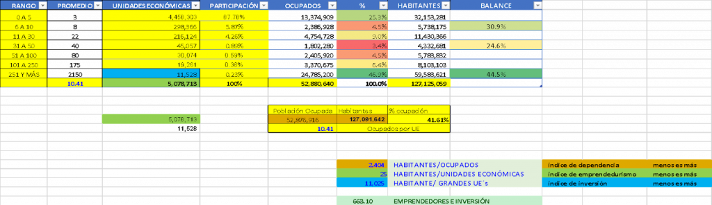 • Un índice de emprendedurismo que resulta de dividir la población total entre el número de unidades económicas con las que se cuenta y