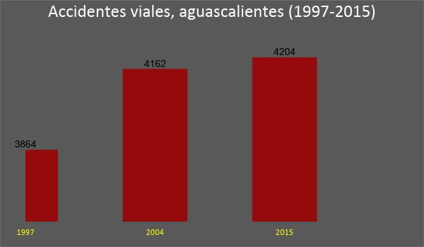 De acuerdo con el Inegi, en sus estadísticas de accidentes de tránsito terrestre en zonas urbanas y suburbanas, el número se ha incrementado entre los años 1997 y el 2016, de la siguiente manera: