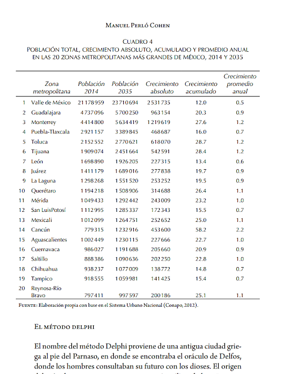 Los autores de la investigación resaltan como algo importante, que en la actualidad las zonas metropolitanas de Acapulco y Morelia forman parte del listado de las veinte más pobladas de México, pero que en 2035 dejarán de serlo y en su lugar se incorporarán Reynosa-Río Bravo y Cancún.