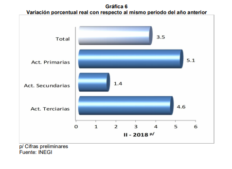 - El estado mostró un incremento anual de 2.7% durante el segundo trimestre de 2018