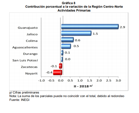 En las Actividades Primarias los estados de Guanajuato y Jalisco fueron los que más aportaron al crecimiento de la región, en el trimestre de estudio.