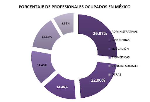 Actualmente, la composición profesional ocupada en el país, está conformada por la mitad de los profesionistas provenientes de las carreras administrativas y de las ingenierías. La otra mitad son profesionales egresados de las carreras educativas, de las ciencias biomédicas, de las ciencias sociales, y otras.