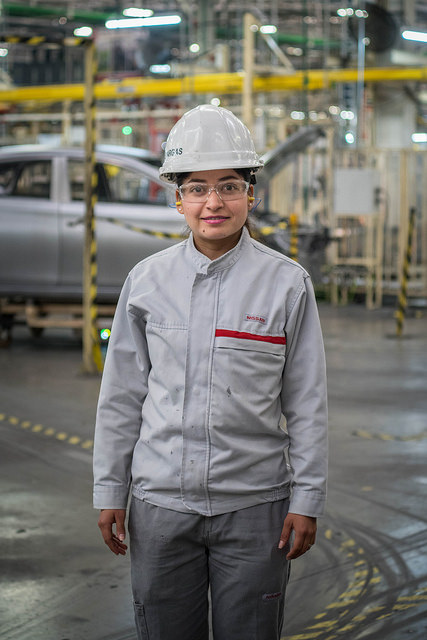 En mi área, Planta Carrocería y en todas, se tiene control de seguridad así como también siempre se está mejorando el ambiente con los compañeros, la verdad es cómodo ya que también ahora hay más mujeres. Por ejemplo, hoy tengo otras cuatro compañeras en Planta.