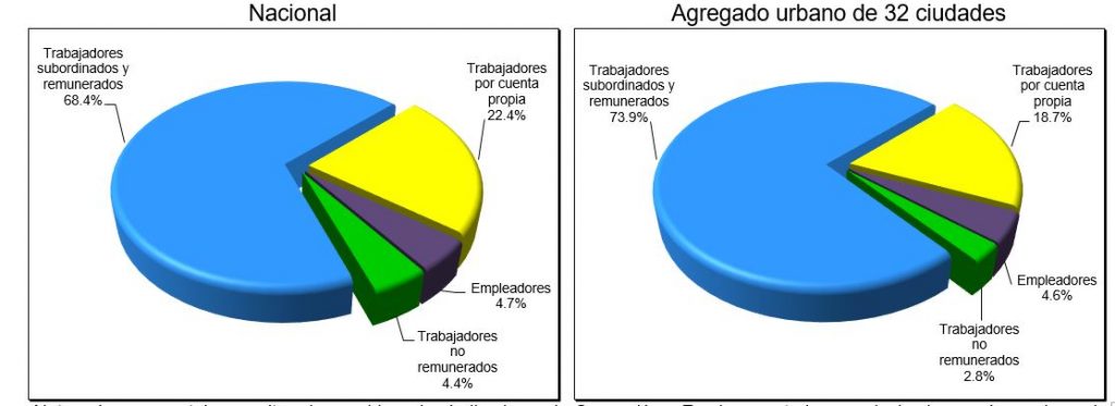 En el ámbito urbano de alta densidad de población, conformado por 32 ciudades de más de 100 mil habitantes, el trabajo subordinado y remunerado representó 73.9% de la ocupación total, es decir 5.5 puntos porcentuales más que en el ámbito nacional.