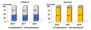 • El 55.2% de los empresarios del sector Comercio al por menor reportan haber participado en el Buen Fin 2018; en los Servicios privados no financieros, la participación fue de 13.6 por ciento
