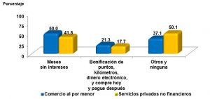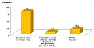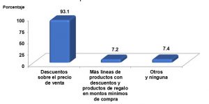 En tal sector, las empresas que otorgan productos de regalo con montos mínimos de compra y más por menos (2×1; 2×1.5; 3×2; etc.) registra 7.1 por ciento.