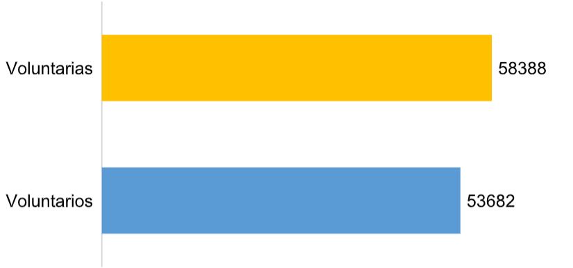 Por sexo, los hombres aportan 53 mil 682 pesos en tanto que cada una de las voluntarias destinó 58 mil 388 pesos con su labor en las asociaciones del país durante 2016.