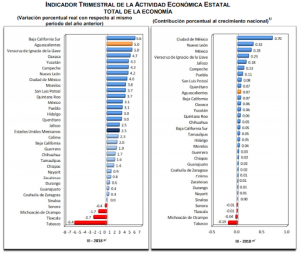 En su comparación anual, los estados que sobresalieron por el aumento en su actividad económica fueron: Baja California Sur, Veracruz de Ignacio de la Llave, Aguascalientes, Oaxaca, Campeche, Nuevo León, Yucatán y la Ciudad de México, en el tercer trimestre de 2018.