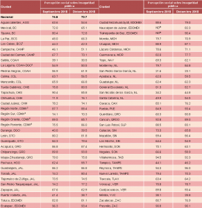 PERCEPCIÓN SOCIAL SOBRE INSEGURIDAD PÚBLICA POR CIUDAD DE INTERÉS SEPTIEMBRE DE 2018 Y DICIEMBRE DE 2018