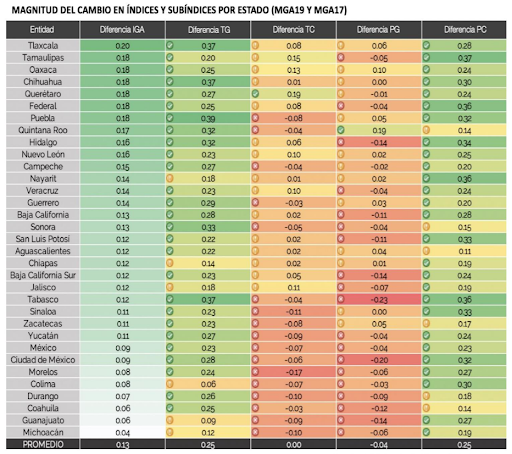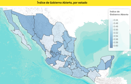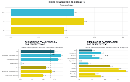- En el estado de Aguascalientes, el índice de Gobierno Abierto creció de 0.43 a 0.57, de 2017 a 2019