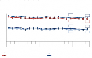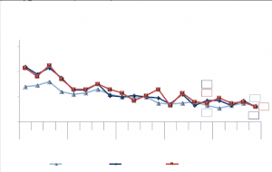 En Aguascalientes, entre el cuarto trimestre de 2017 y el de 2018, la Tasa de Informalidad Laboral 1 muestra un decremento de 1.5 puntos porcentuales al pasar de 43.8 a 42.3 por ciento; la Tasa de Ocupación en el Sector Informal 1, presenta una disminución de 0.7 de punto porcentual. Al excluir del cálculo a la población ocupada agropecuaria, se obtiene la Tasa de Ocupación en el Sector Informal 2 (TOSI2) con valores de 23.5% en el cuarto trimestre de 2017 y 22.5% en el cuarto trimestre de 2018; los valores de la Tasa de Informalidad Laboral 2 (TIL2) son 41.3 y 40.6%, respectivamente en los periodos antes mencionados.