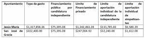 Según el acuerdo CG-A-25/19, las cifras destinadas al financiamiento público para gastos de campaña de candidaturas independientes, son las siguientes: