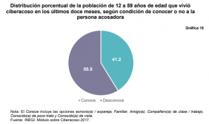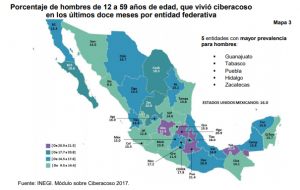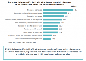 Del 29 de mayo al 21 de julio del 2017, el Instituto Nacional de Estadística y Geografía (Inegi) levantó el Módulo sobre Ciberacoso (Mociba), cuyo objetivo es generar información estadística que permita conocer la prevalencia del ciberacoso entre las personas de doce a 59 años de edad, y de aquella que vivió alguna situación en los últimos doce meses, la situación de ciberacoso vivida y su caracterización.