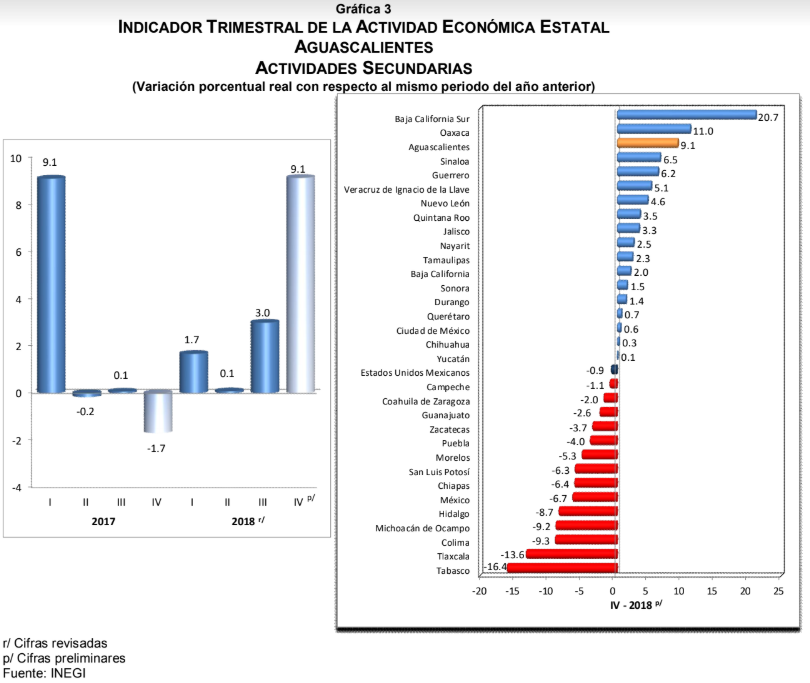 • Aguascalientes mostró un incremento anual de 8.5% durante el cuarto trimestre de 2018