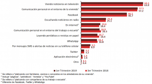 Formas de enterarse sobre la situación sobre la seguridad pública en su ciudad, en el ámbito nacional, tercer trimestre de 2018 y primer trimestre de 2019 (Porcentaje)