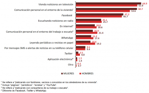 63.1% de la población de 18 años y más consulta los “noticieros en televisión” para informarse sobre la seguridad pública, el narcotráfico y la violencia; 57.5% mantiene “comunicación personal en el entorno de la vivienda” para dicho propósito; mientras que 46.5% se informa por medio de Facebook, y 25.4% a través de “noticieros en radio”.