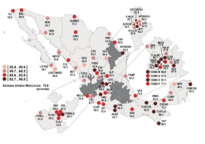 Las tres ciudades con mayor porcentaje de población de 18 años y más que reportaron haber tenido conflictos o enfrentamientos fueron: Hermosillo (61.3%), Región Poniente de la Ciudad de México (56.6%) y Guadalajara (54.7%). Mientras que las ciudades donde se obtuvieron los menores porcentajes de conflicto entre la población fueron: Guadalupe (11.9%), Apodaca (12.3%) y Ciudad Juárez (17 por ciento).