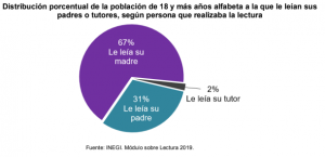 De la población que declaró que le leían sus padres o tutores durante la infancia, se identifica que en mayor proporción la lectura la realizaba la madre, 67 por ciento.