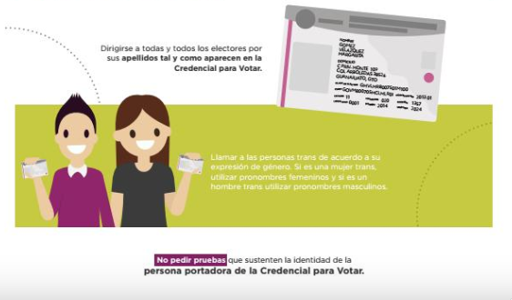 En él se estableció que todas las personas trans que cuenten con su credencial para votar con fotografía vigente y estuvieran inscritas en la Lista Nominal de Electores, podrían emitir su voto el día de la elección, y en ningún caso la falta de concordancia de la expresión de género de la persona, con la expresada en la fotografía de la Credencial, o bien, con el nombre o el sexo asentados en ella, podría ser causa para impedir el sufragio.
