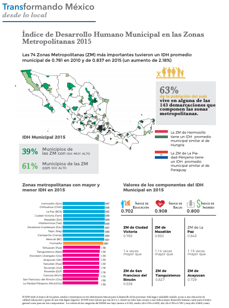 El IDH mide el avance de los países, estados y municipios en tres dimensiones básicas para el desarrollo de las personas: vida larga y saludable (Salud); acceso a una educación de calidad (Educación) y gozar de una vida digna (Ingreso). El IDH tiene valores que van de 0 a 1, donde un valor más cercano a uno indica mayor desarrollo humano, tanto para el índice general, como para sus tres componentes. Los valores de las categorías del IDHM son: bajo (menor a 0.550), medio (de 0.550 a 0.699), alto (de 0.700 a 0.799) y muy alto (0.800 y más)