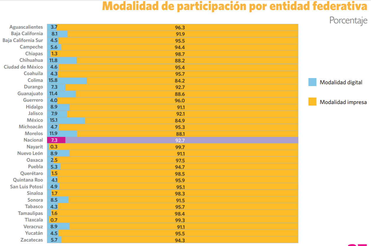 La muestra observada en el estado fue de 90,415 niños, niñas y adolescentes, número que representa el 27.4 por ciento de la población entre 6 y 17 años de la entidad, de los cuales el 98.86 por ciento confesó asistir a la escuela. La proporción de niñas y mujeres es del 49.1 por ciento del total, y de niños y hombres del 46.81 por ciento. El 3.09 por ciento marcó ninguna respuesta y el .95 por ciento restante seleccionó “otro” o “no me identifico con ninguno de los dos”.