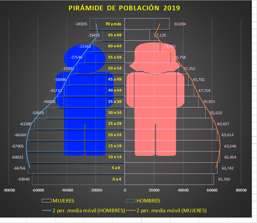 *Los hombres son mayoría entre los grupos de menores de 25 años, pero entre las de edades maduras como al llegar a adultas mayores, las mujeres pasan a ser una clara mayoría en Aguascalientes.