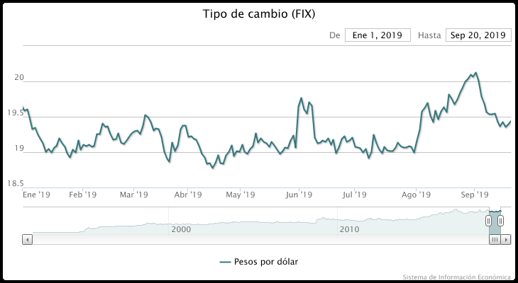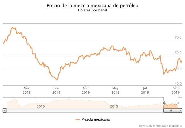 El segundo desacierto se ha presentado en los ingresos petroleros esperados, debido a una disminución en la producción petrolera que se dio a partir de octubre de 2018. Para 2019 se esperaban 1,847 mbd y el promedio ha sido de 1,691 mbd, lo estimado para 2020 es 1,951 mbd de acuerdo con el Plan de Negocios de Pemex lo que parece complejo de cumplir. El precio por barril se estimó en promedio en 64 dólares en el presupuesto y durante el año ha fluctuado por debajo de los 60 dólares, lo proyectado para 2020 es conservador con 49 dólares. El tipo de cambio se estima en 20 pesos por dólar, durante el año se ha ubicado en la banda de los 19.50, estas tres variables repercuten en menores ingresos.