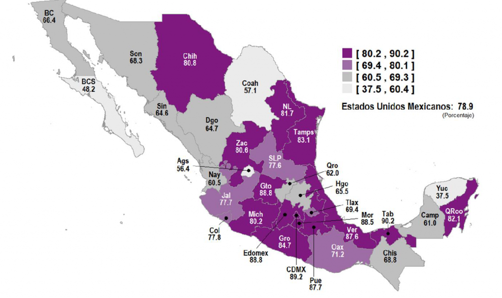 La casa en Aguascalientes es la que tiene la mejor percepción de seguridad pero hay una docena de estados con calificaciones superiores a los ochenta puntos hasta lograr 88.2 de Nayarit que ostenta el primer lugar.