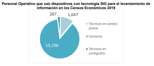 En 2019, durante el levantamiento de los Censos Económicos, el personal en campo utilizó un SIG que permitió actualizar la cartografía y obtener la georreferenciación de las unidades económicas y viviendas; información que permite generar importantes productos para la toma de decisiones, como lo es el Directorio Estadístico Nacional de Unidades Económicas (Denue) https://www.inegi.org.mx/app/mapa/denue/.