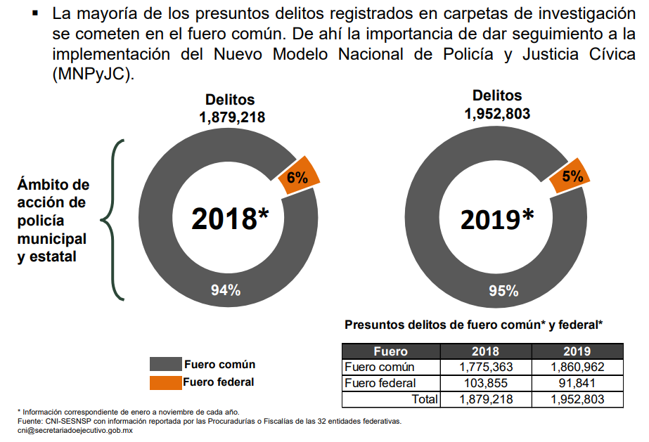 • De esos delitos, 1,860,962 son del fuero común (95%) y 91,841 del fuero federal (5%)