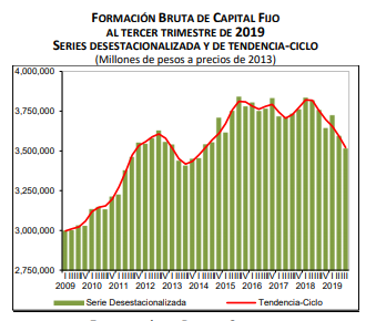 La Oferta Global (igual a la Demanda Global) de Bienes y Servicios a precios corrientes sumó 33,807,394 millones de pesos (33.8 billones de pesos) en el tercer trimestre de 2019.