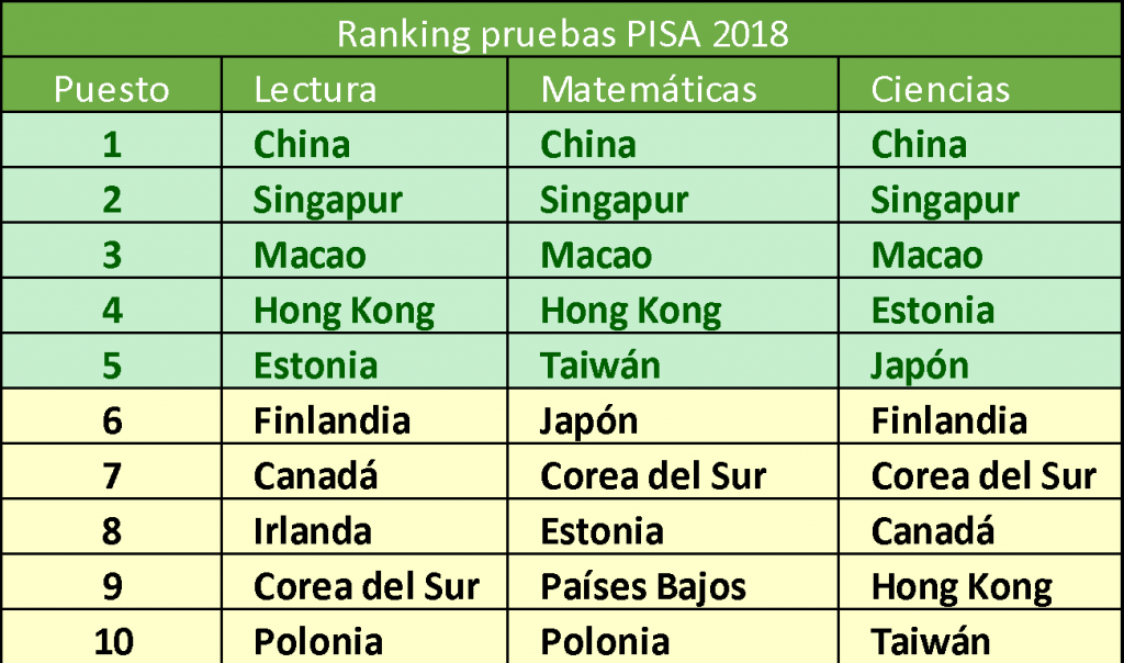 Es indudable el avance de algunos países asiáticos como: China, Singapur, Macao, Hong Kong, Japón, Corea del Sur  y Taiwán. En el continente americano, los mejores resultados fueron para Canadá, que ocupó el séptimo puesto global en lectura, el octavo en ciencias y el número 12 en matemáticas. México se encuentra cincuenta lugares después, en el sitio 53/73 con 420 puntos en lectura; en el lugar 57/73 en ciencias con 419 puntos y en el 61/73 con 409 puntos en matemáticas.