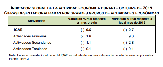 - El Inegi informó que el IGAE disminuyó (-)0.5% en octubre
