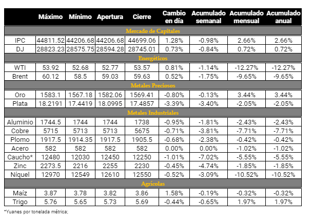 - El precio del cobre mostró una reducción de 0.71% y cerró cotizando en 5,675 dólares por tonelada métrica