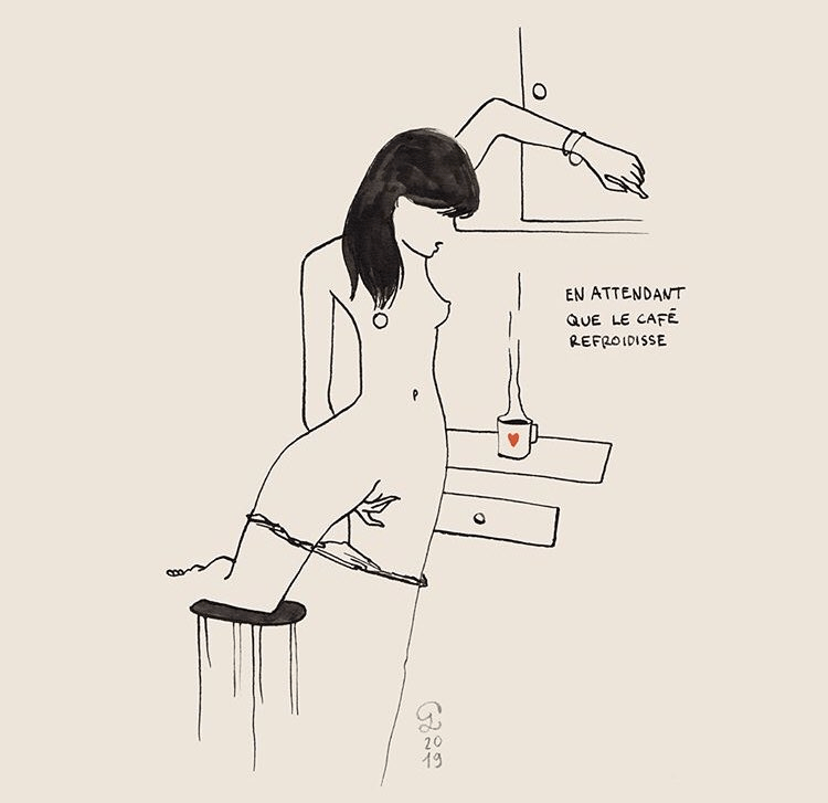 En attendant que le café refroidisse. Esperando que el café se enfríe.