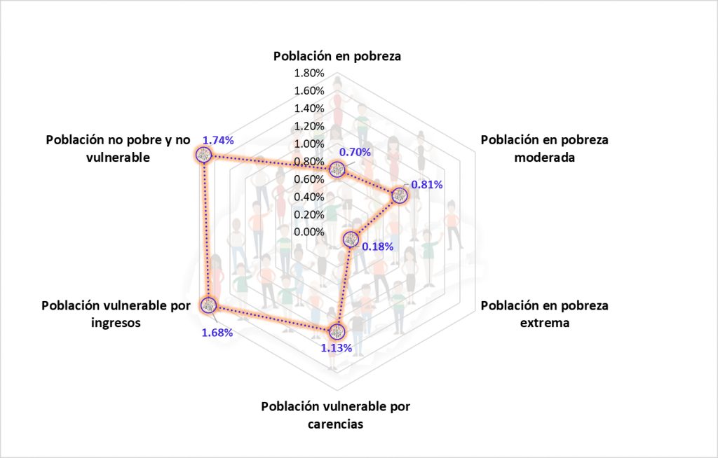 De acuerdo con el Consejo Nacional de Evaluación de la Política Social (Coneval), los pobres y los vulnerables por ingresos son todas las personas cuyo ingreso es inferior al de la línea del bienestar y la única diferencia entre una categoría y otra es la presencia de carencias.