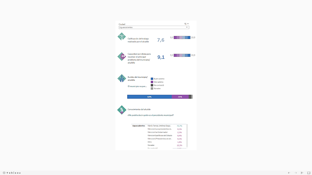 Las ciudades con mayor porcentaje al contestar correctamente quién es su alcalde son: Ciudad Juárez (89%), Reynosa (86%), Benito Juárez -Cancún- (82%), Ciudad Victoria (80%), Tehuacán (80%) y Cuajimalpa (80%).