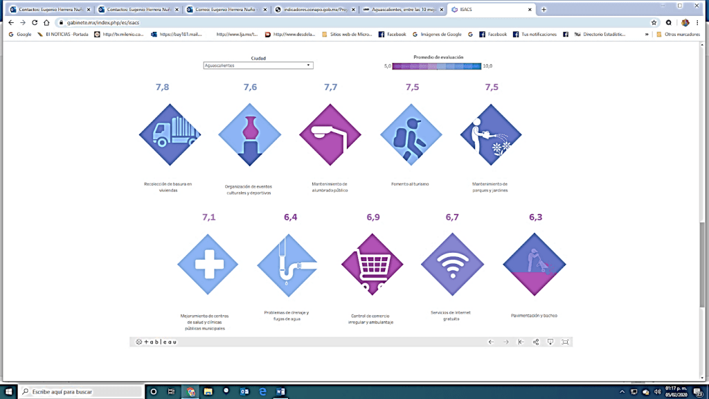 ISACS: ¿Cómo calificaría el desempeño de su Gobierno municipal/delegacional en los siguientes servicios y acciones que deben ofrecerse a la ciudadanía? Califique cada uno en una escala del cinco al diez, en donde cinco es reprobado y diez es excelente.