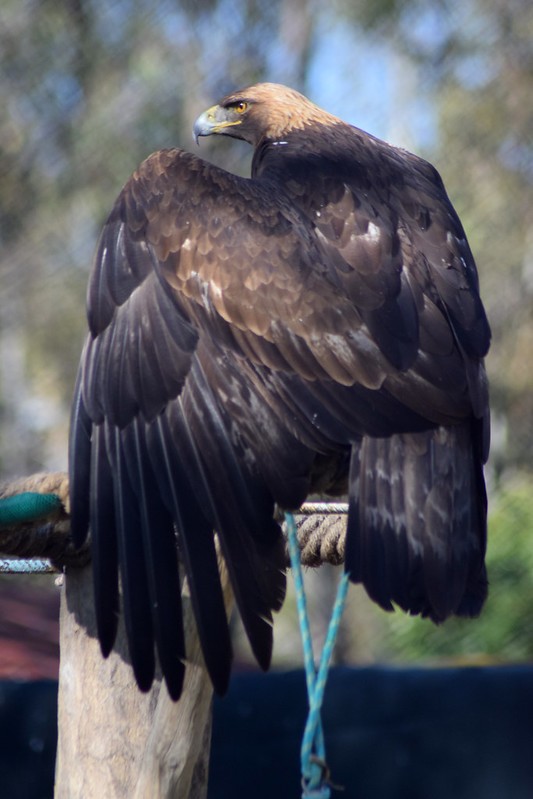 El parque Rodolfo Landeros cuenta con un Centro de Rehabilitación de Aves Rapaces donde se encuentran dos ejemplares de Águila Real, si bien el objetivo final de este centro es la reintegración de los animales a sus hábitats naturales, en el caso de estas dos águilas, su liberación no será posible. En uno de los casos, según comenta José de Jesús Estrada, médico veterinario encargado del centro, el águila sufre de una lesión en un ala de mucho tiempo atrás y le es imposible volar, actualmente se encuentra resguardada en un espacio especial mientras se prepara un riel para poderla sacar a un lugar abierto y pueda ejercitarse. En el otro caso, el águila fue alimentada y criada entre pollos por lo cual se improntó, es decir, se acostumbró a la proximidad e interacción con las personas, motivo por el cual perdió su instinto y capacidad de caza, físicamente se encuentra en buenas condiciones, sin embargo, su liberación sería una condena de muerte pues, al no ser capaz de atrapar su alimento, sus posibilidades de supervivencia serían muy bajas.