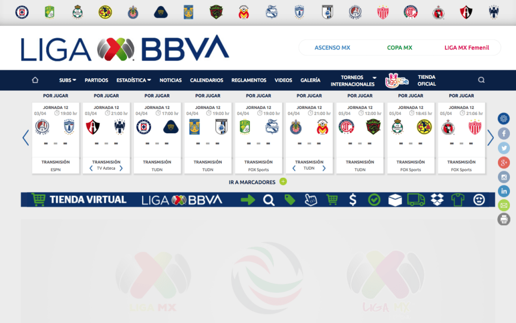 Curiosamente, en la página oficial de la Liga MX se encuentra el calendario de la Jornada 11 sin fechas ni horarios, según se muestra en la siguiente imagen: