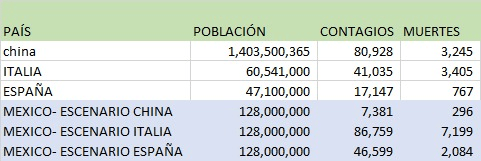 “He hecho un pequeño modelo matemático, simulando qué pasaría en México en con la evolución del Covid-19 en función de cómo ha evolucionado en los países de China, Italia y España y el nivel de avance en días que lleva cada país, los resultados que me dieron son los siguientes”, compartió el economista: