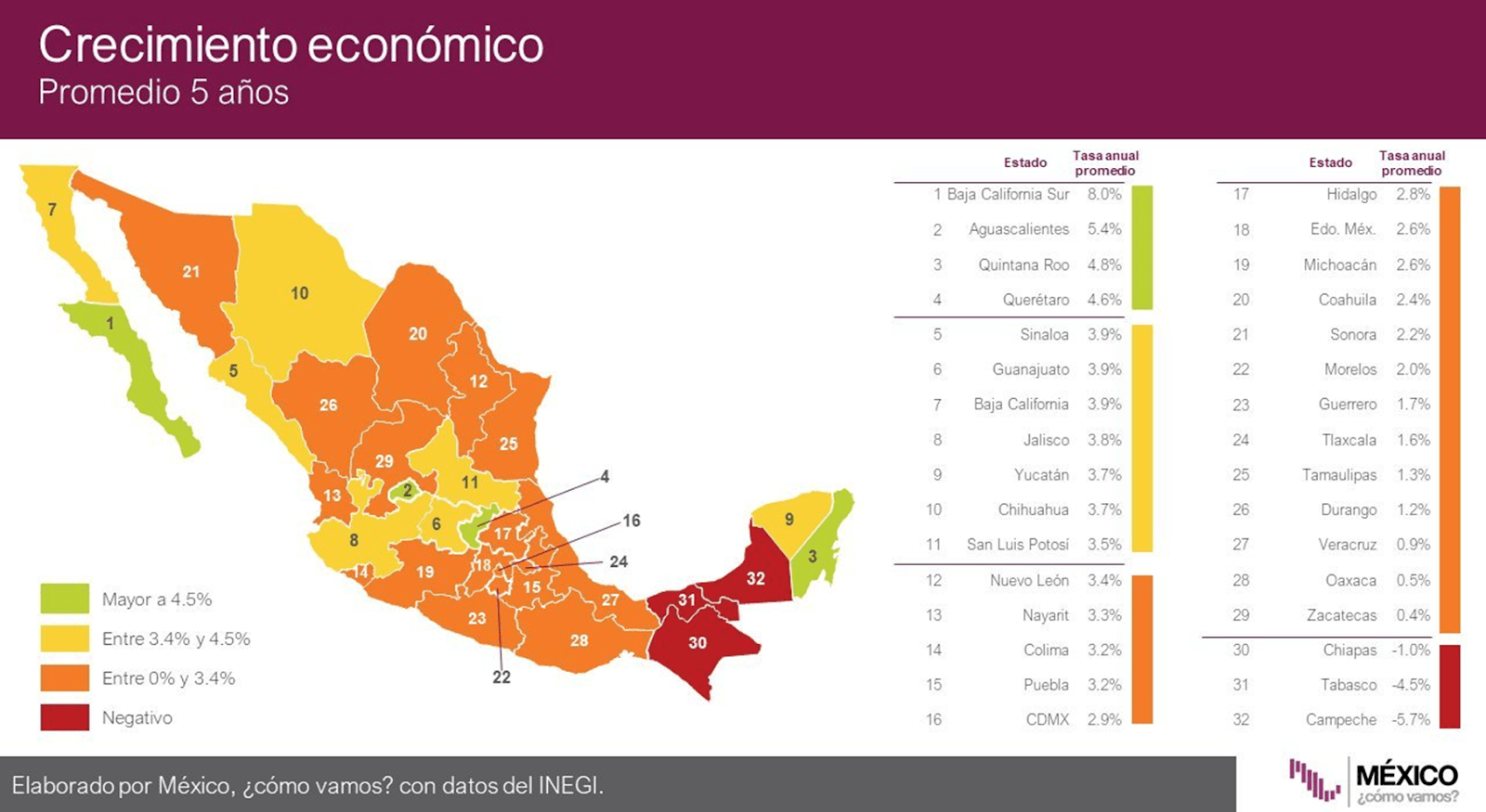 En Aguascalientes el crecimiento económico se ha hecho presente los últimos cinco años con una tasa de crecimiento solo superada por Baja California Sur.