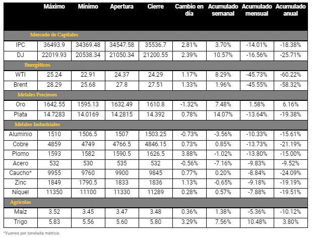 La mejor expectativa no solo vino de Estados Unidos, sino también de Europa, pues el Parlamento alemán respaldó el paquete de gastos para la crisis de 750 mil millones de euros. Paquete que incluye préstamos, garantías y ayudas para empresas grandes y pequeñas.