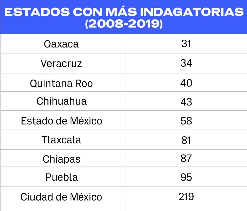 En los últimos 12 años (de 2008 a 2019) se han iniciado 976 indagatorias por el delito de trata de personas en México, pero sólo 9 entidades concentran el 70% de los casos.