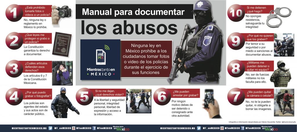 En el portal de la Comisión de Derechos Humanos del Estado de Aguascalientes (CDHEA) www.dhags.org se puede encontrar el manual para documentar abusos de una autoridad, autoría de la organización de la sociedad civil “Mientras tanto en México” que comprende diez respuestas dirigidas a la ciudadanía en caso de presenciar agresión física de una autoridad.