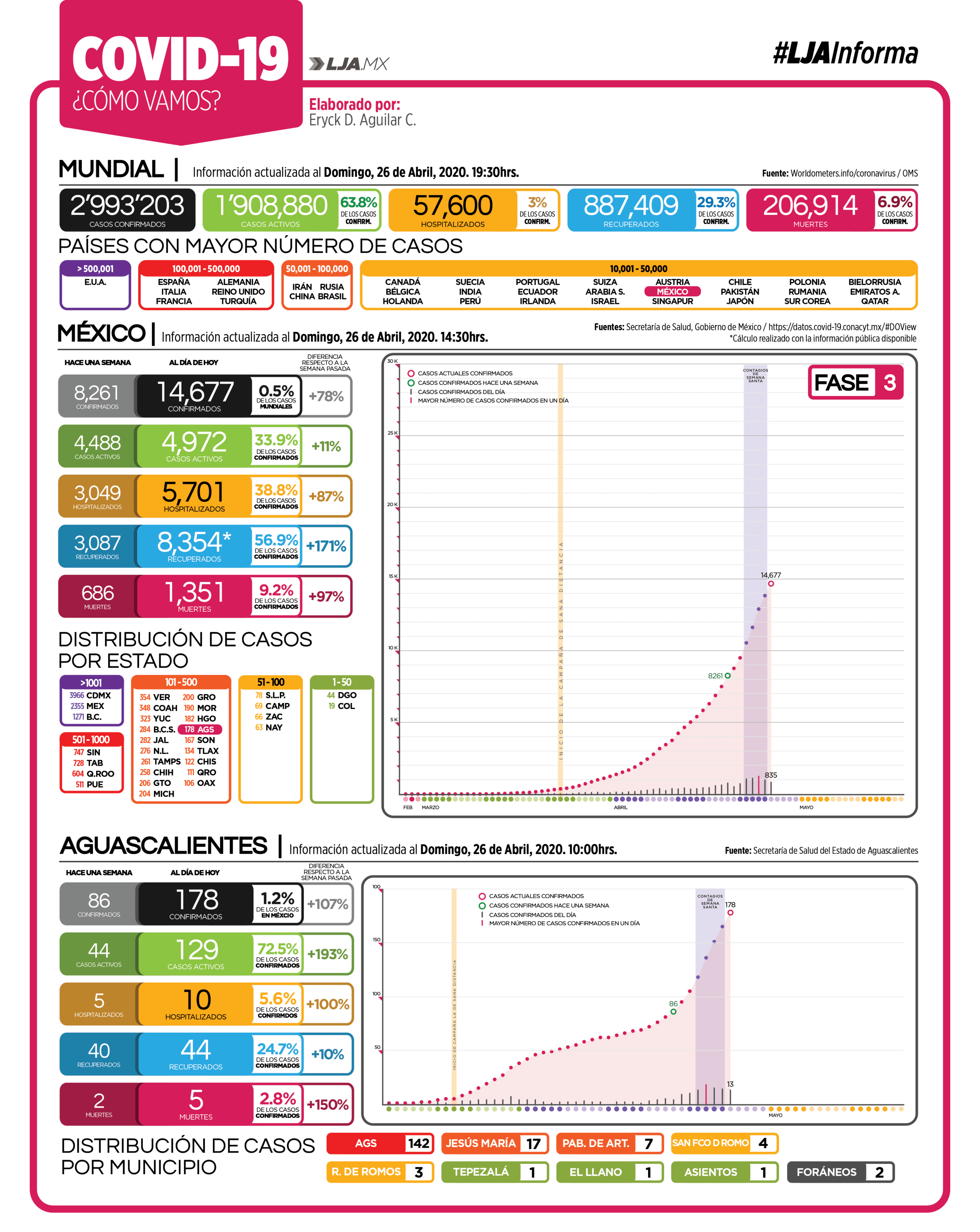 🔴 Esta semana Aguascalientes registró 92 nuevos casos confirmados de #Covid19, un 441% más de los casos registrados la semana pasada (17 casos). Suman ya 178 contagios confirmados