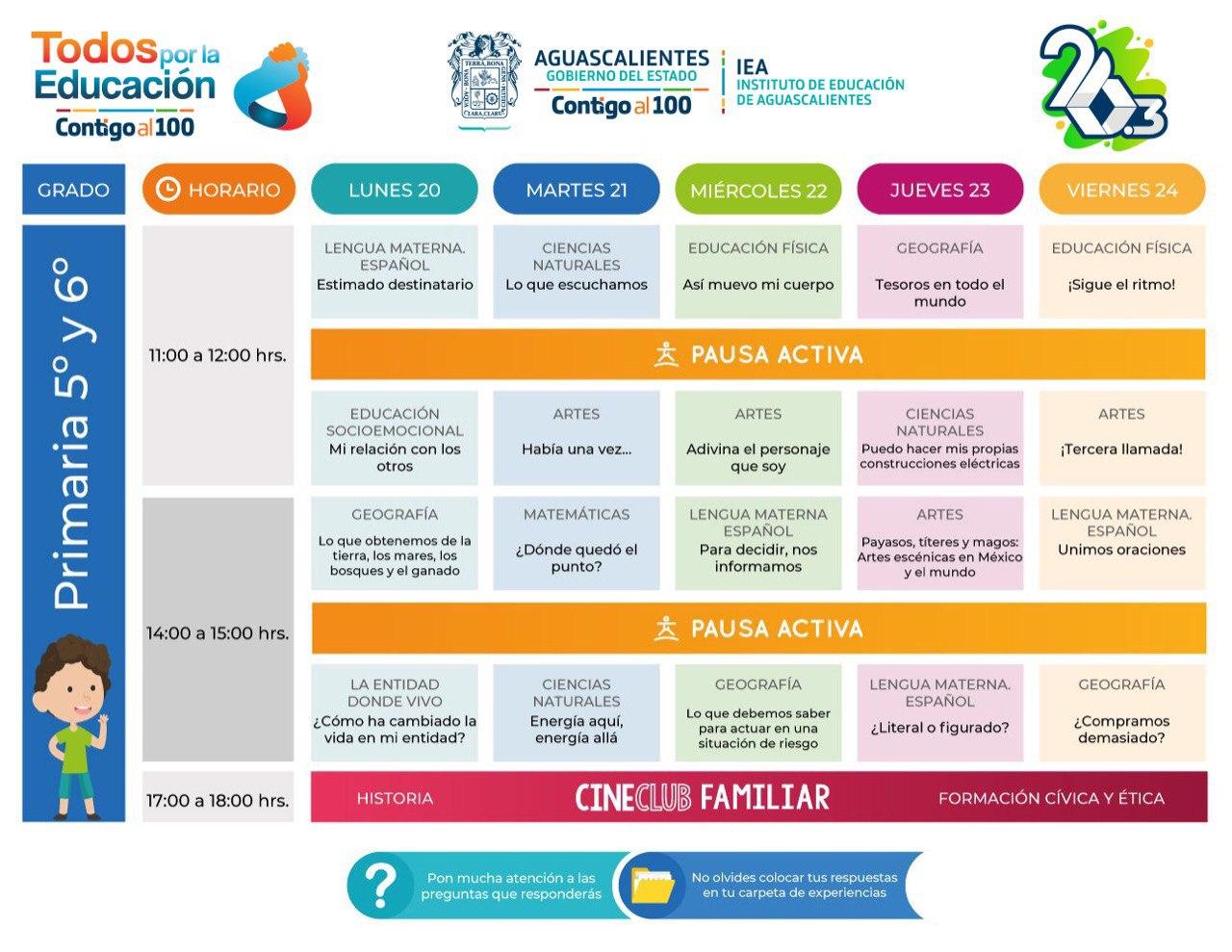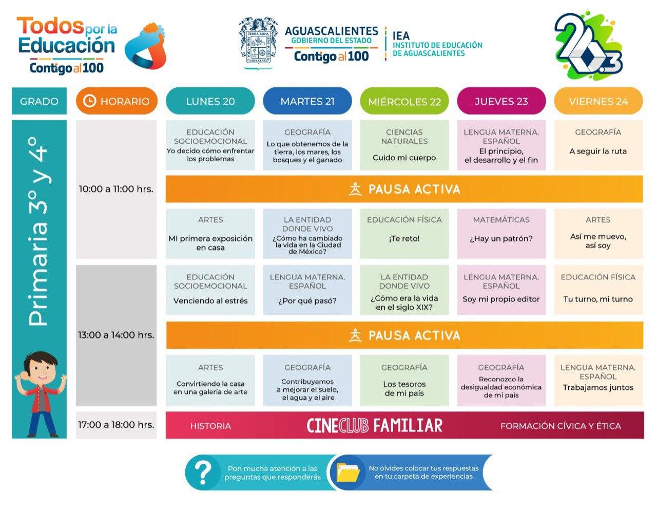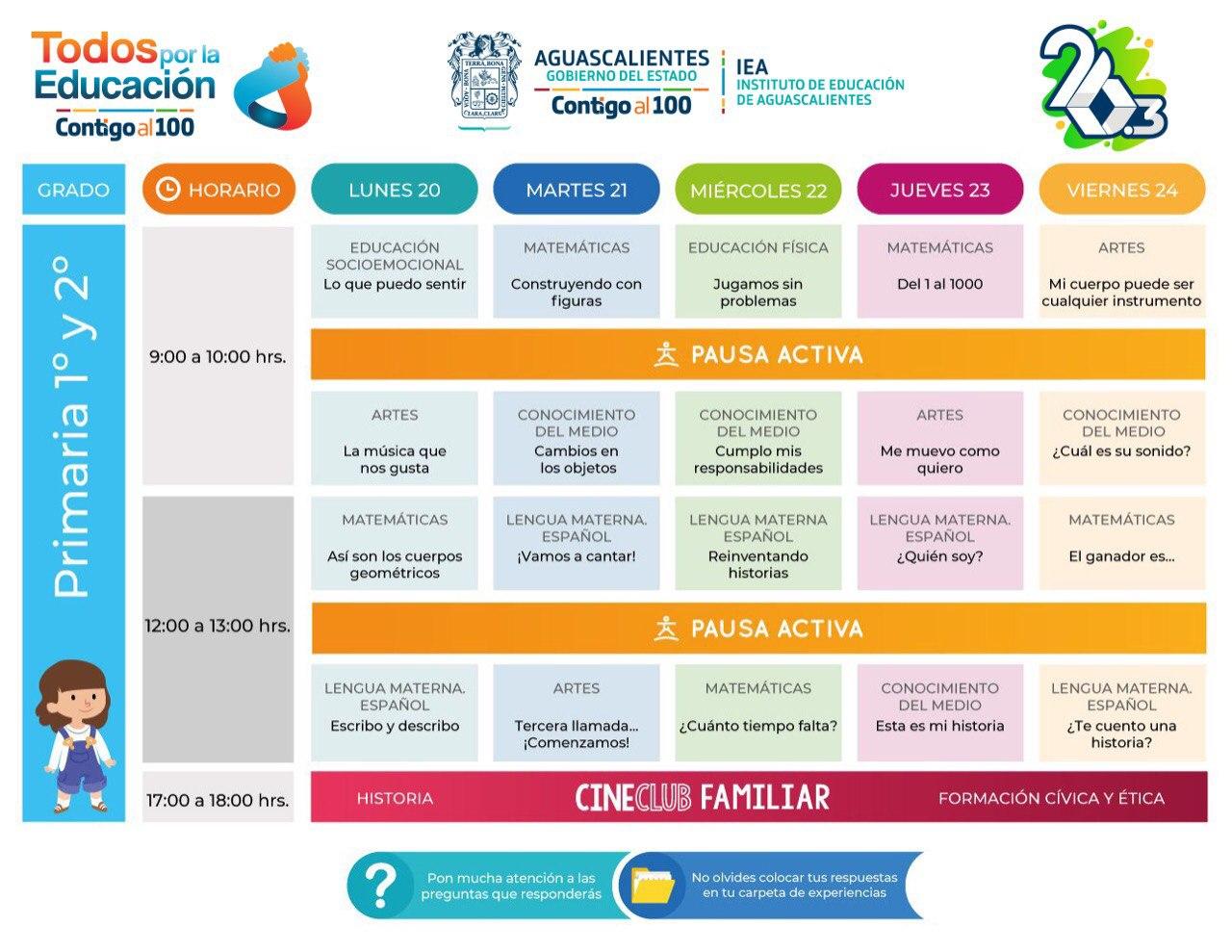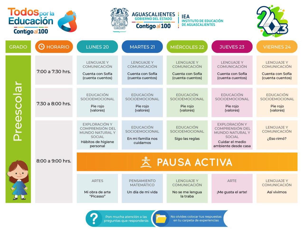 Durante la conferencia de prensa virtual, el titular de educación en Aguascalientes, dio a conocer los horarios y programación base para cada uno de los grados escolares, desde preescolar hasta el 6to año de primaria, los pormenores de cómo, cuándo y dónde se podrá usar se irán dando a lo largo del día y de la semana.