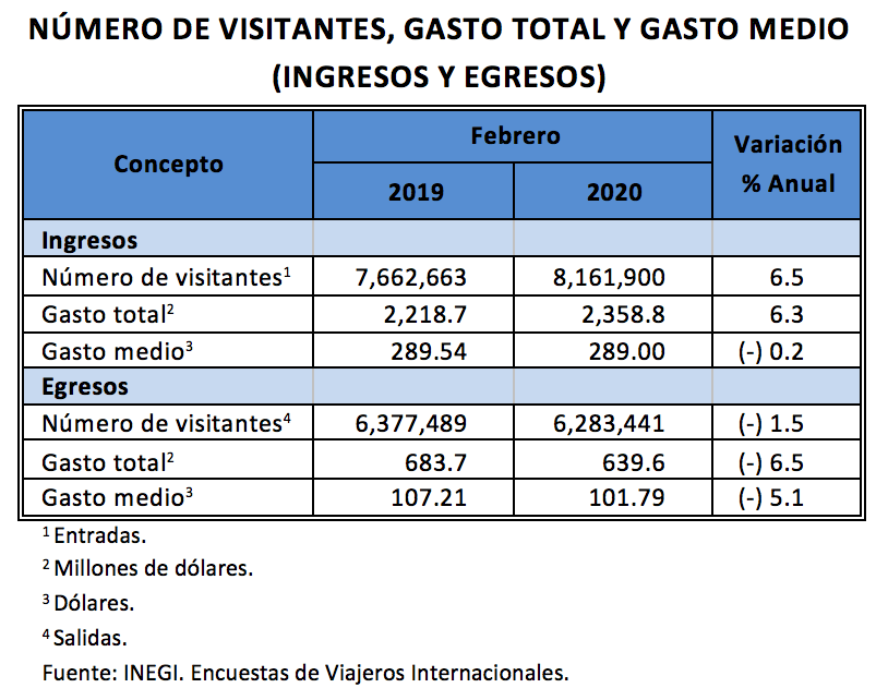 En el caso de los turistas de internación, en febrero de este año se observó un avance a tasa anual de 7.9%: los turistas que ingresaron vía aérea aumentaron 7% y los que lo hicieron por vía terrestre crecieron 15.4 por ciento.