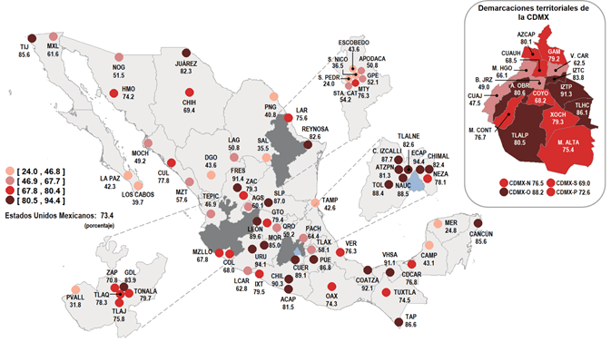 Los datos de Aguascalientes en este reporte de movilidad comunitaria son similares a la media nacional, en compras y entretenimiento es del 65%; en estaciones de transporte el 75%; y 50% en lugares de trabajo; mientras que en la movilidad residencial, donde la media nacional es de apenas el 20%, sólo diez entidades federativas superan ese porcentaje, en los tres primeros lugares Querétaro, Baja California Sur y Yucatán, que casi alcanzan el 30%, mientras que Aguascalientes no llega a ese 20%